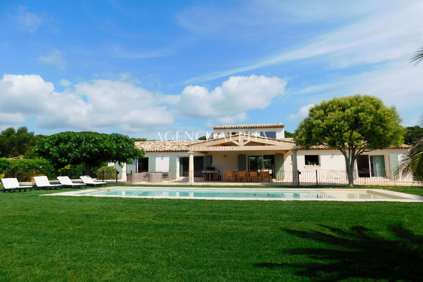 ******************************* VENDU ******************************** Maison entièrement rénovée avec gout et de beaux matériaux, située au calme, tout proche du Golf et des plages de Beauvallon. Sur deux niveaux, elle se compose en rez de jardin, d'une entrée, un vaste séjour donnant sur une très grande terrasse et la piscine, une cuisine équipée, quatre chambres, une buanderie, deux salles de bains, deux toilettes. A l'étage, une jolie suite parentale avec dressing, salle de bains, toilettes, et sa belle terrasse.