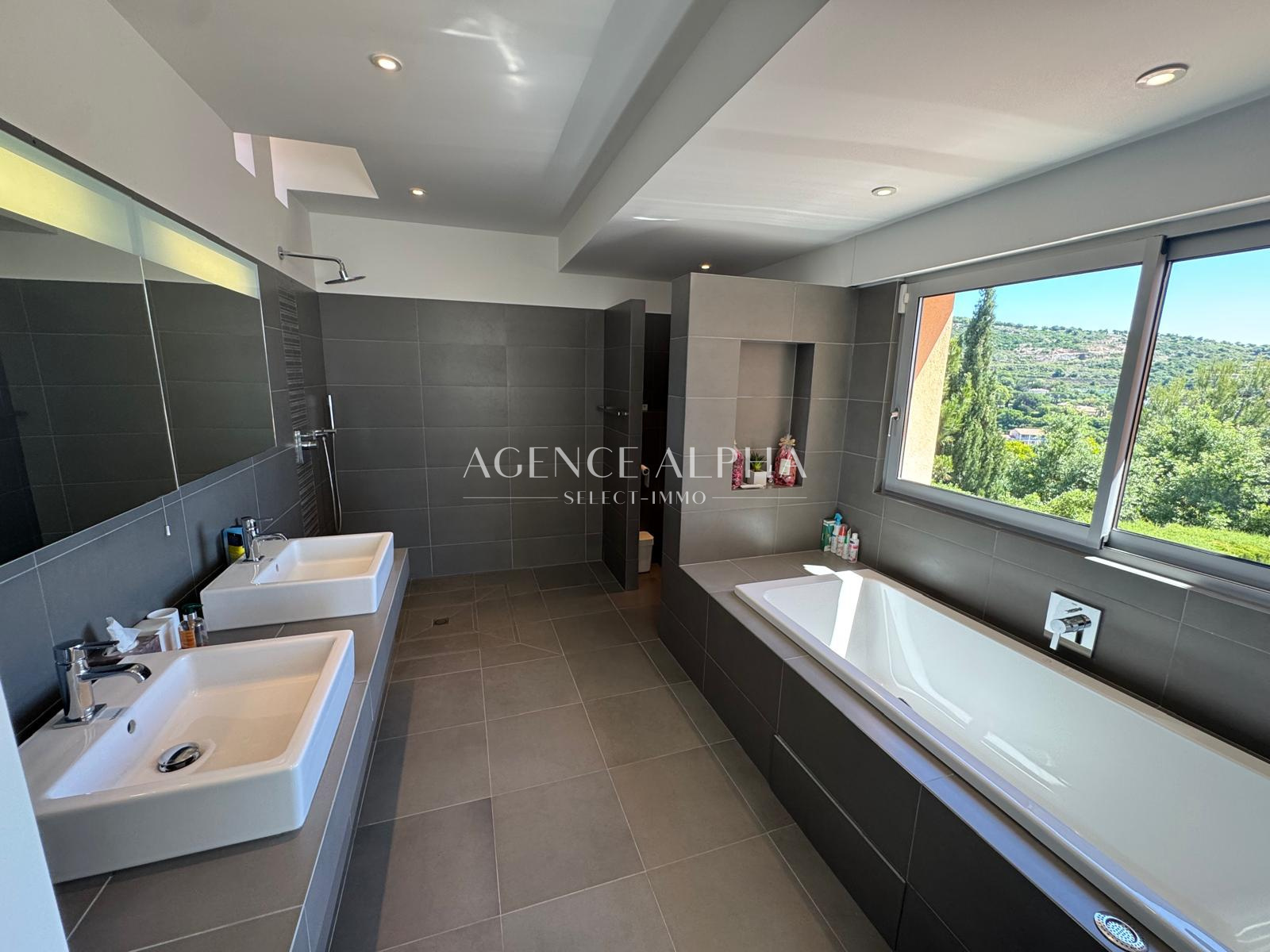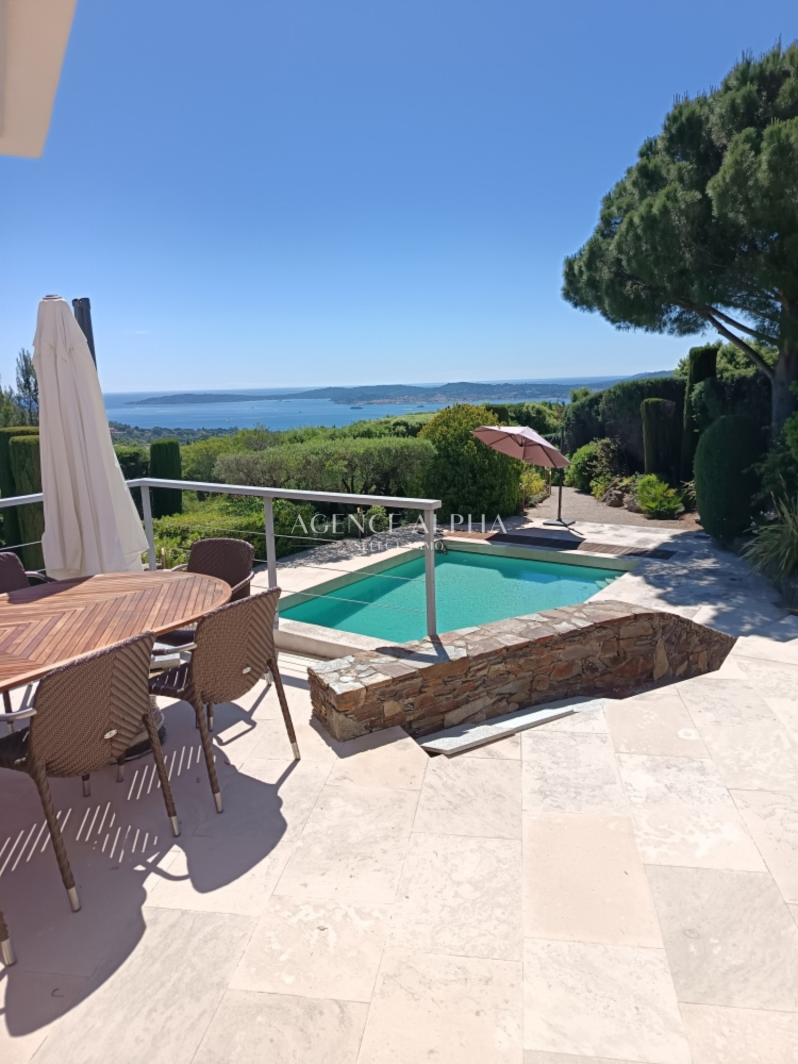 Cette belle villa au style »contemporain » de 8/9 pièces possède de beaux volumes (5Chambes, bureau, 350m² habitables environ), jouit d’une situation dominante privilégiée dans une impasse lui garantissant le calme, l’intimité , un très bel environnement et une superbe vue panoramique sur la mer, le village de St Tropez et les collines environnantes.