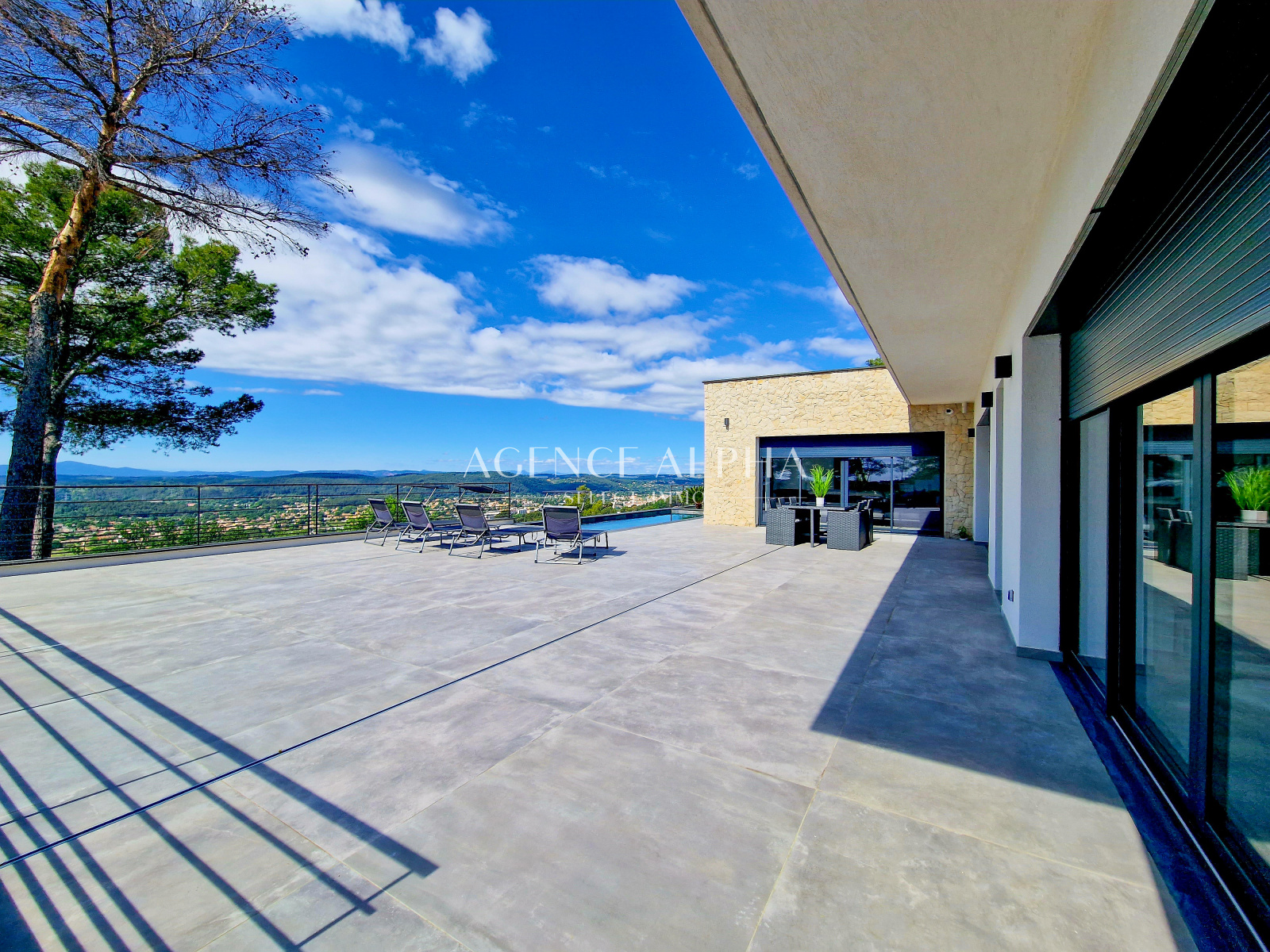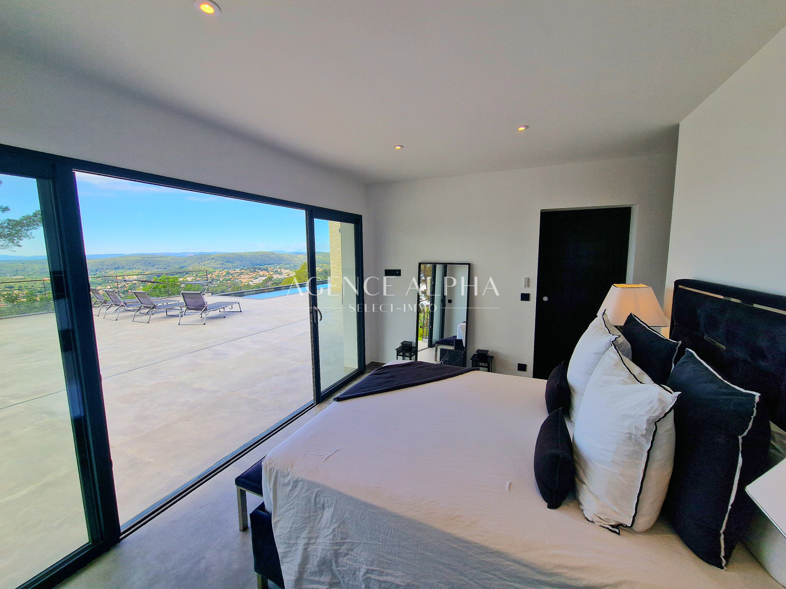 - Un vaste salon-salle à manger avec vue donnant sur une magnifique terrasse, une cuisine américaine avec arrière-cuisine, une suite avec salle de douches et dressing, un wc.