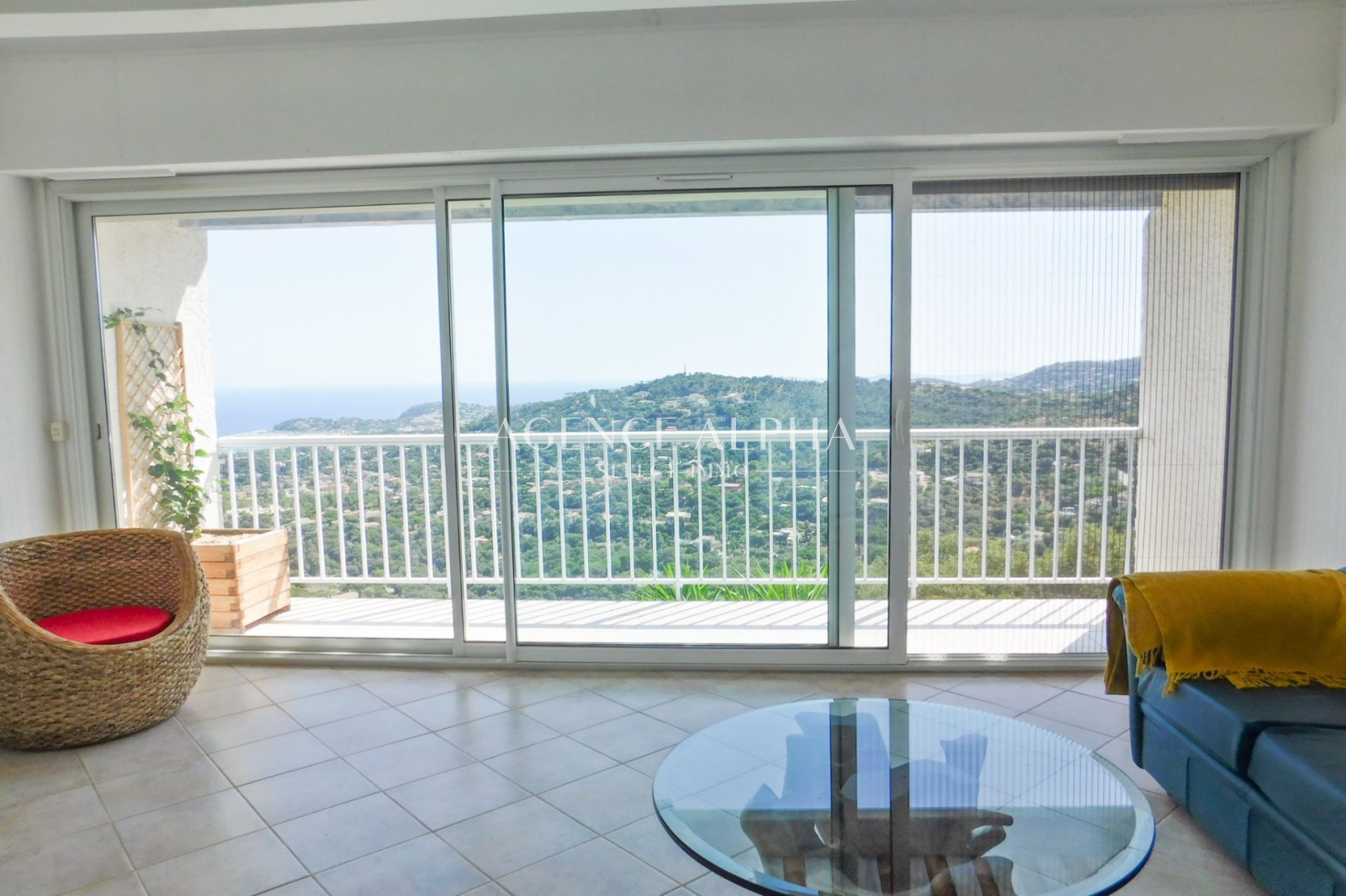 Exclusivité - Magnifique vue mer panoramique à 180° pour cette maison située sur les hauteurs de Cavalaire-Sur-Mer, au bout d'une impasse, dans un cadre fabuleux. Elle se compose au rez-de-chaussée d'un séjour avec balcon, une cuisine avec cellier, au niveau inférieur une chambre avec terrasse, une salle de bains, un wc, à l'étage une chambre avec terrasse. Ce bien est vendu avec une place de parking. La maison dispose d'un petit box de rangement et d'une cave. La vue est exceptionnelle dans la quasi-totalité de la maison.